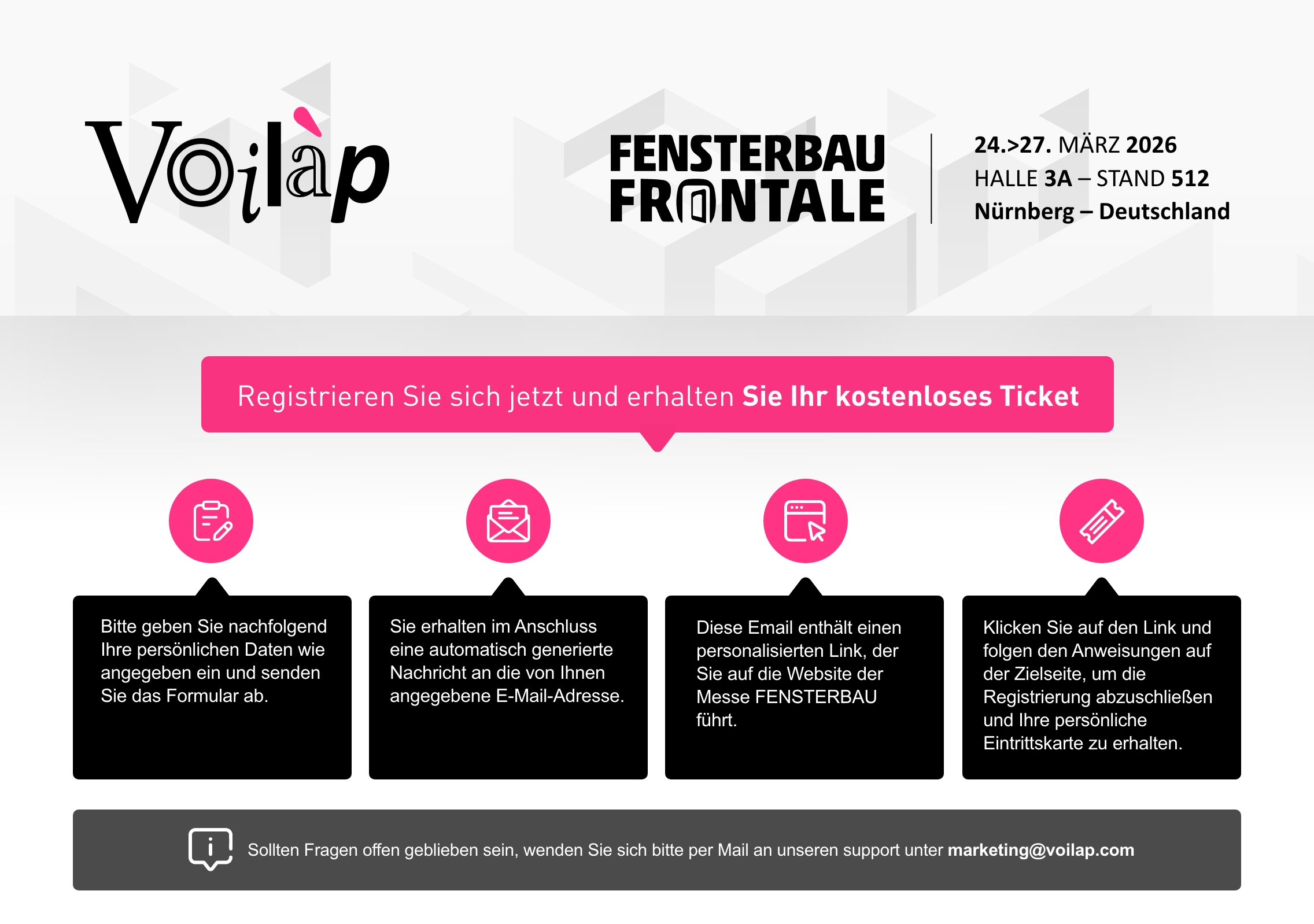 Für weitere Informationen und zur Geltendmachung Ihrer Rechte in Bezug auf die Verarbeitung Ihrer personenbezogenen Daten können Sie sich per E-Mail an uns wenden: voilap-info@voilap.com oder schriftlich